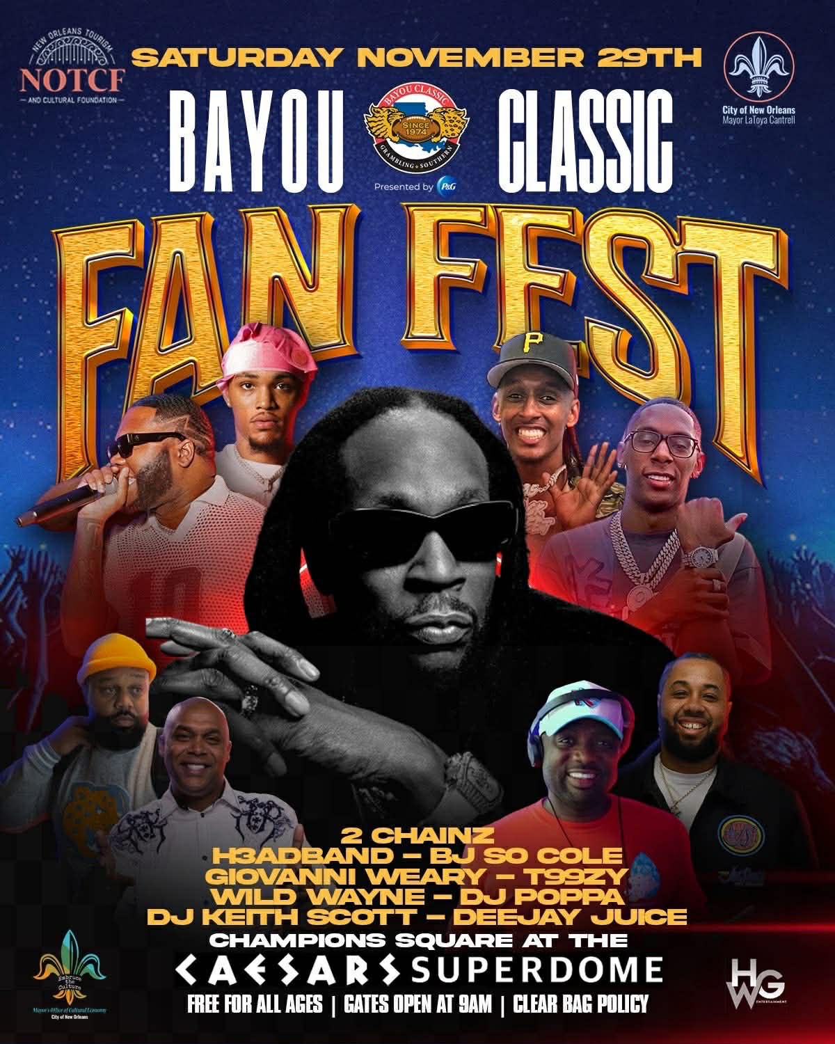 Caesars Superdome 1500 Sugar Bowl Dr,, New Orleans, LA, United StatesAnnual Bayou Classic Fan Fest The Bayou Classic Fan Fest is where the energy starts and the culture takes over. Get ready for a full afternoon of music, dancing, food, interactive brand activations, giveaways, and HBCU pride — all before the biggest rivalry in Black college football.Featuring live DJs, celebrity appearances, games, sampling, surprise performances, […]