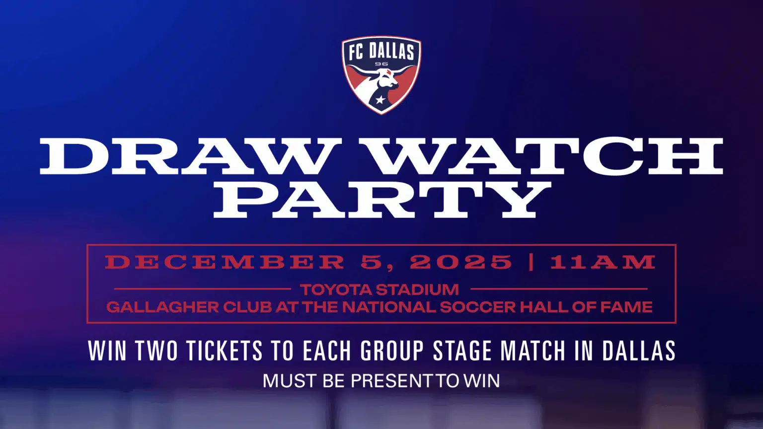 FC Dallas announced it will host a free community FIFA World Cup 2026™ Draw Watch Party on Friday, Dec. 5 at 11 a.m. inside the Gallagher Club at the National Soccer Hall of Fame at Toyota Stadium. The celebration will give fans a front-row seat as the world learns its group-stage matchups — and one lucky supporter will walk away with one of the most coveted prizes in global sports.
