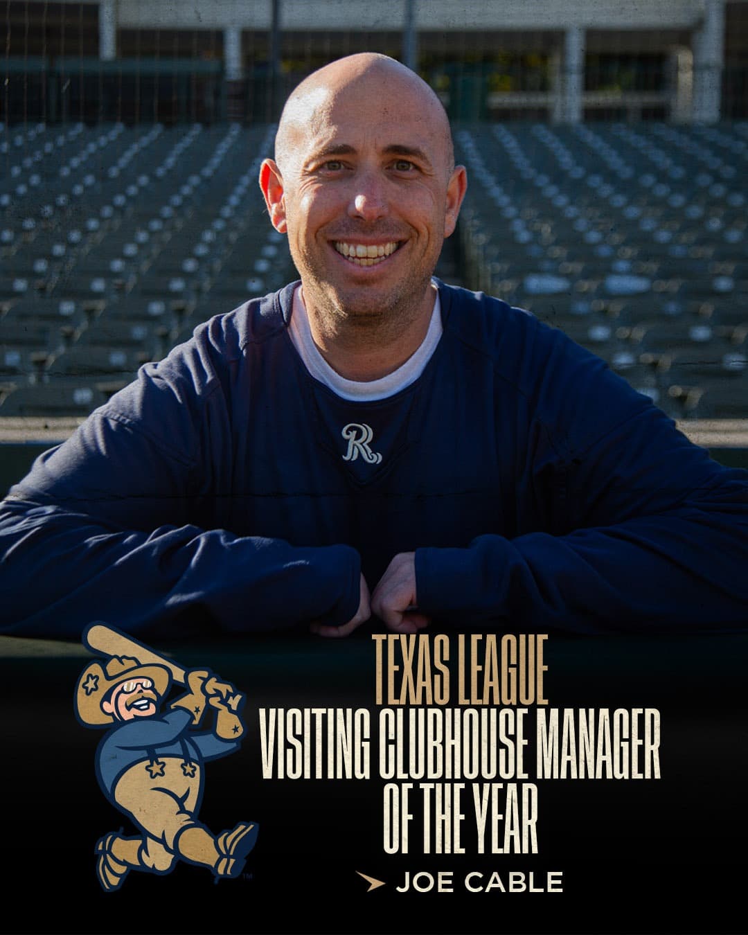 Cable’s honor carries extra weight because it comes directly from the people who experience his work firsthand. The Texas League Visiting Clubhouse Manager of the Year award is determined by surveys of league managers, players, and team executives — the individuals who rely on visiting clubhouse managers for critical day-to-day needs during long road trips.